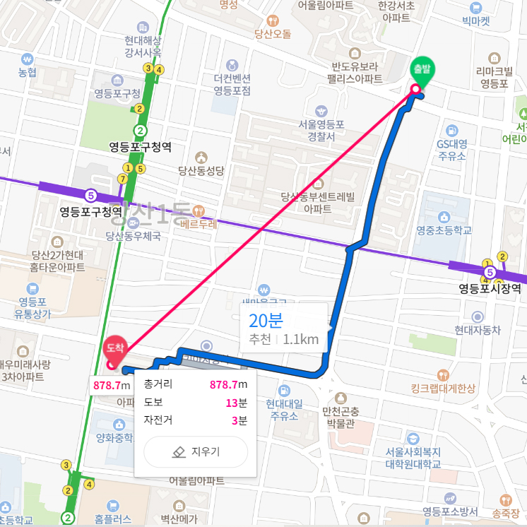자전거나 오토바이 킥보드로 하게 되면 따로 보험도 들어야 하고, 인증 과정이 복잡한 것 같아 도보를 선택했다. 개인 장비 외의 공유 장비 (따릉이, 킥보드 공유 서비스)를 사용하지 못해서 따로 구비하지 않으면 도보 이외에 간편하게 할 만한 것이 없었다. 나는 자전거도 킥보드도 없는 뚜벅이.